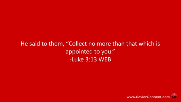 He said to them, “Collect no more than that which is appointed to you.” -Luke 3:13 WEB