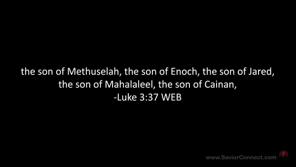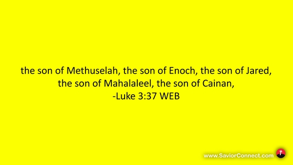 the son of Methuselah, the son of Enoch, the son of Jared, the son of Mahalaleel, the son of Cainan, -Luke 3:37 WEB