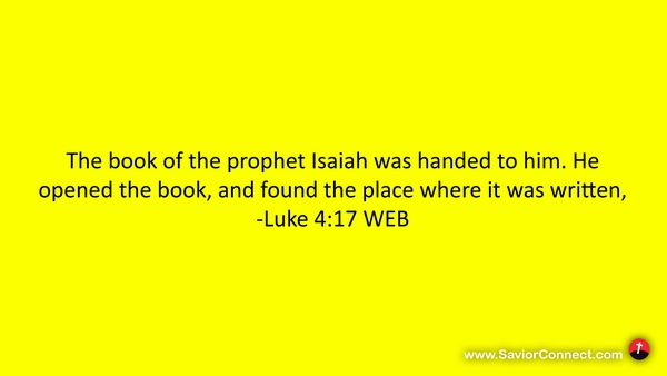 The book of the prophet Isaiah was handed to him. He opened the book, and found the place where it was written, -Luke 4:17 WEB