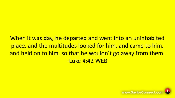When it was day, he departed and went into an uninhabited place, and the multitudes looked for him, and came to him, and held on to him, so that he wouldn’t go away from them. -Luke 4:42 WEB