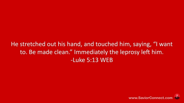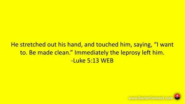 He stretched out his hand, and touched him, saying, “I want to. Be made clean.” Immediately the leprosy left him. -Luke 5:13 WEB