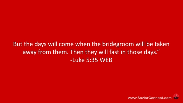 But the days will come when the bridegroom will be taken away from them. Then they will fast in those days.” -Luke 5:35 WEB