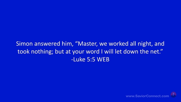 Simon answered him, “Master, we worked all night, and took nothing; but at your word I will let down the net.” -Luke 5:5 WEB