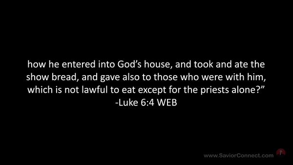 how he entered into God’s house, and took and ate the show bread, and gave also to those who were with him, which is not lawful to eat except for the priests alone?” -Luke 6:4 WEB