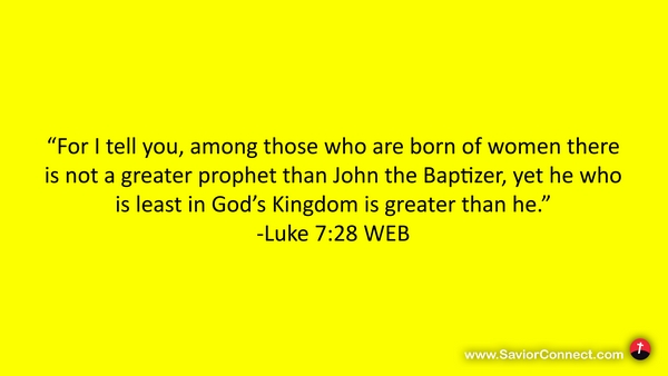 “For I tell you, among those who are born of women there is not a greater prophet than John the Baptizer, yet he who is least in God’s Kingdom is greater than he.” -Luke 7:28 WEB