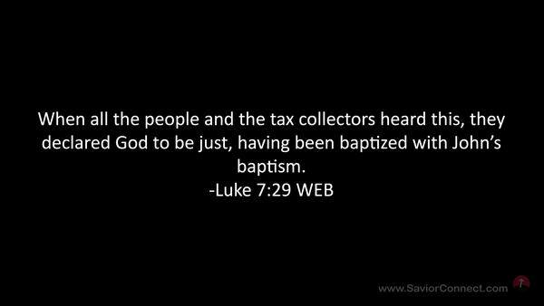 When all the people and the tax collectors heard this, they declared God to be just, having been baptized with John’s baptism. -Luke 7:29 WEB