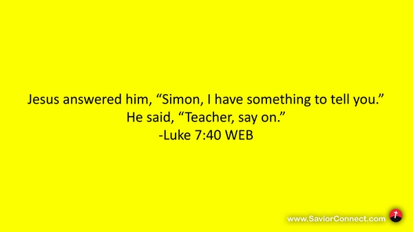 Jesus answered him, “Simon, I have something to tell you.” He said, “Teacher, say on.” -Luke 7:40 WEB