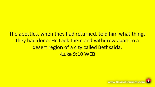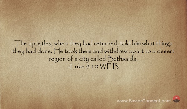 The apostles, when they had returned, told him what things they had done. He took them and withdrew apart to a desert region of a city called Bethsaida. -Luke 9:10 WEB