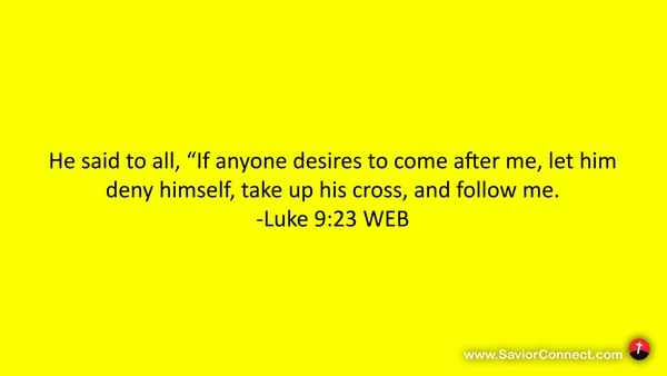 He said to all, “If anyone desires to come after me, let him deny himself, take up his cross, and follow me. -Luke 9:23 WEB