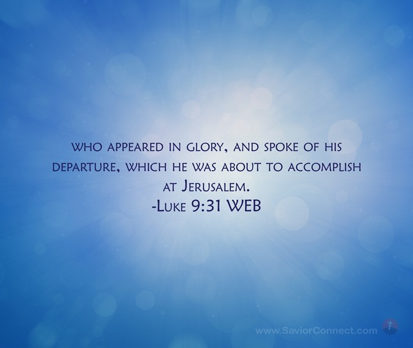 who appeared in glory, and spoke of his departure, which he was about to accomplish at Jerusalem. -Luke 9:31 WEB
