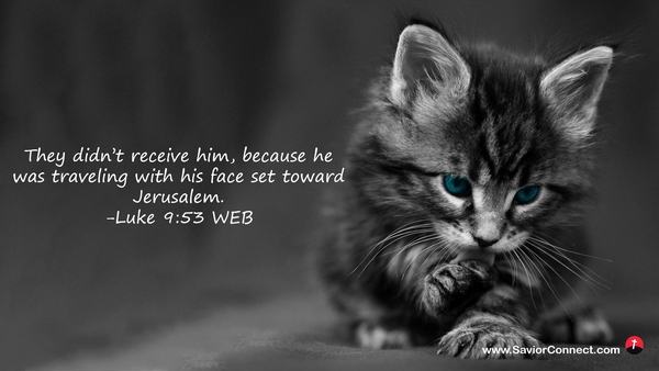 They didn’t receive him, because he was traveling with his face set toward Jerusalem. -Luke 9:53 WEB