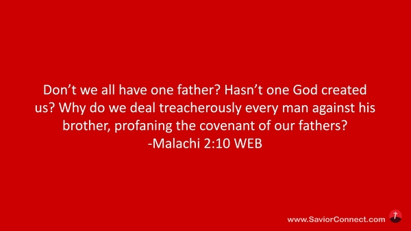 Don’t we all have one father? Hasn’t one God created us? Why do we deal treacherously every man against his brother, profaning the covenant of our fathers? -Malachi 2:10 WEB