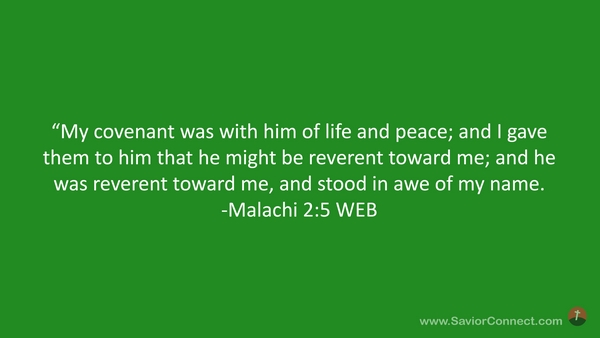 “My covenant was with him of life and peace; and I gave them to him that he might be reverent toward me; and he was reverent toward me, and stood in awe of my name. -Malachi 2:5 WEB