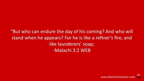 “But who can endure the day of his coming? And who will stand when he appears? For he is like a refiner’s fire, and like launderers’ soap; -Malachi 3:2 WEB