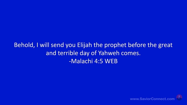 Behold, I will send you Elijah the prophet before the great and terrible day of Yahweh comes. -Malachi 4:5 WEB
