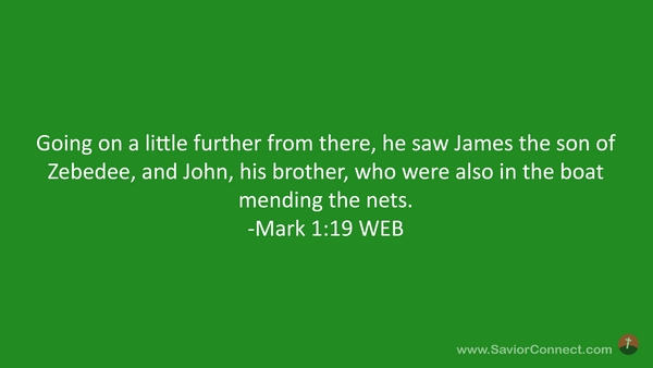 Going on a little further from there, he saw James the son of Zebedee, and John, his brother, who were also in the boat mending the nets. -Mark 1:19 WEB