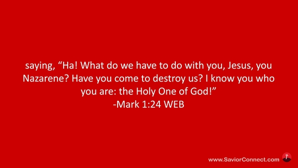 saying, “Ha! What do we have to do with you, Jesus, you Nazarene? Have you come to destroy us? I know you who you are: the Holy One of God!” -Mark 1:24 WEB