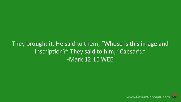 They brought it. He said to them, “Whose is this image and inscription?” They said to him, “Caesar’s.” -Mark 12:16 WEB
