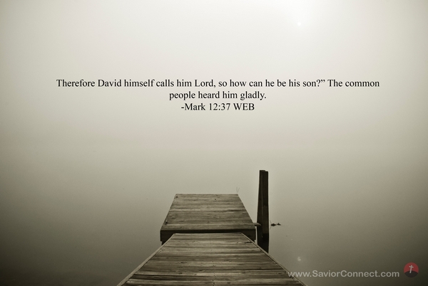 Therefore David himself calls him Lord, so how can he be his son?” The common people heard him gladly. -Mark 12:37 WEB