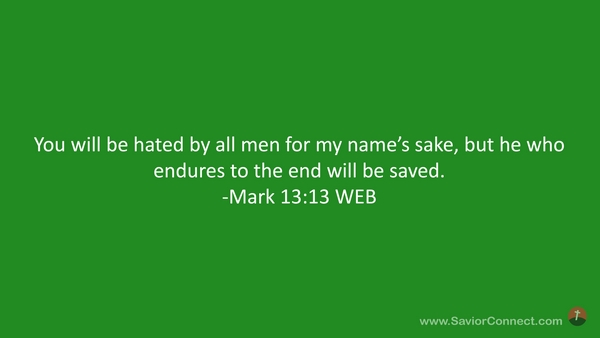 You will be hated by all men for my name’s sake, but he who endures to the end will be saved. -Mark 13:13 WEB