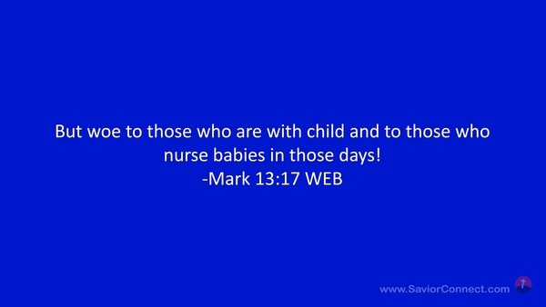 But woe to those who are with child and to those who nurse babies in those days! -Mark 13:17 WEB