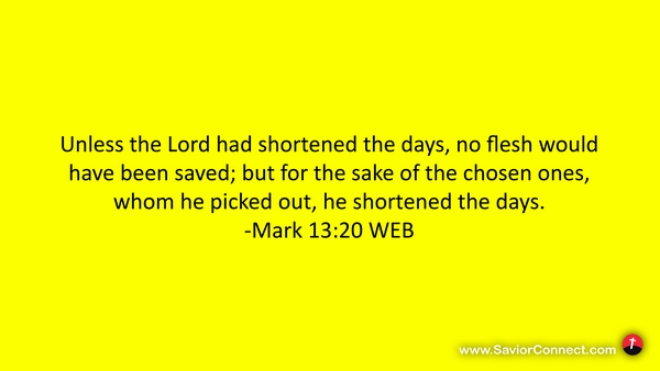 Unless the Lord had shortened the days, no flesh would have been saved; but for the sake of the chosen ones, whom he picked out, he shortened the days. -Mark 13:20 WEB