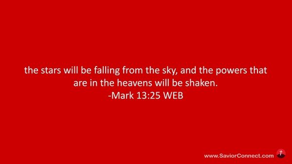 the stars will be falling from the sky, and the powers that are in the heavens will be shaken. -Mark 13:25 WEB