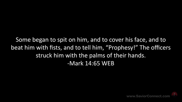 Some began to spit on him, and to cover his face, and to beat him with fists, and to tell him, “Prophesy!” The officers struck him with the palms of their hands. -Mark 14:65 WEB