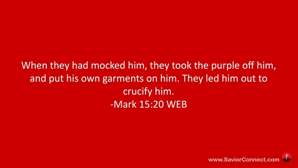 When they had mocked him, they took the purple off him, and put his own garments on him. They led him out to crucify him. -Mark 15:20 WEB