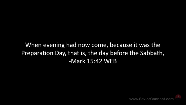 When evening had now come, because it was the Preparation Day, that is, the day before the Sabbath, -Mark 15:42 WEB