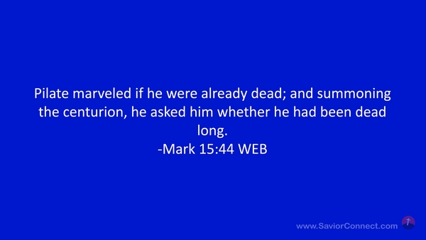 Pilate marveled if he were already dead; and summoning the centurion, he asked him whether he had been dead long. -Mark 15:44 WEB