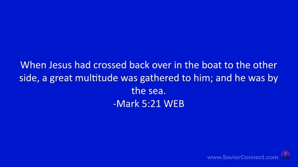 When Jesus had crossed back over in the boat to the other side, a great multitude was gathered to him; and he was by the sea. -Mark 5:21 WEB