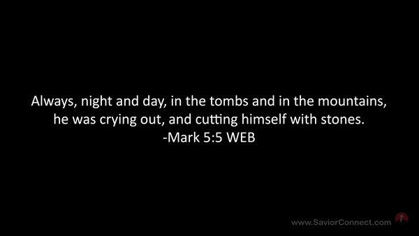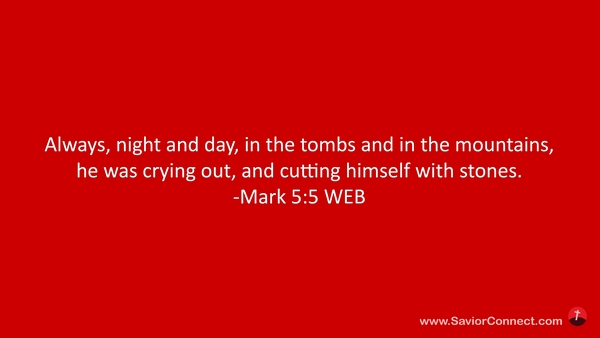 Always, night and day, in the tombs and in the mountains, he was crying out, and cutting himself with stones. -Mark 5:5 WEB