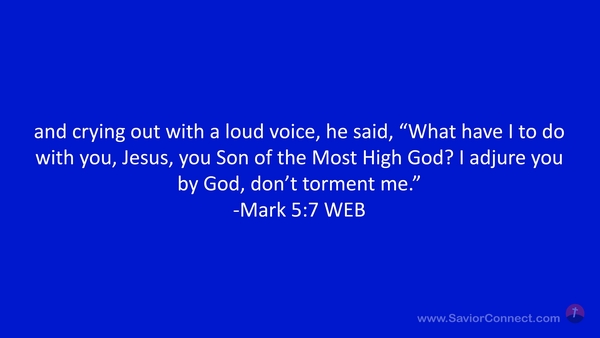 and crying out with a loud voice, he said, “What have I to do with you, Jesus, you Son of the Most High God? I adjure you by God, don’t torment me.” -Mark 5:7 WEB