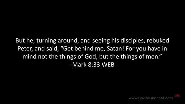 But he, turning around, and seeing his disciples, rebuked Peter, and said, “Get behind me, Satan! For you have in mind not the things of God, but the things of men.” -Mark 8:33 WEB