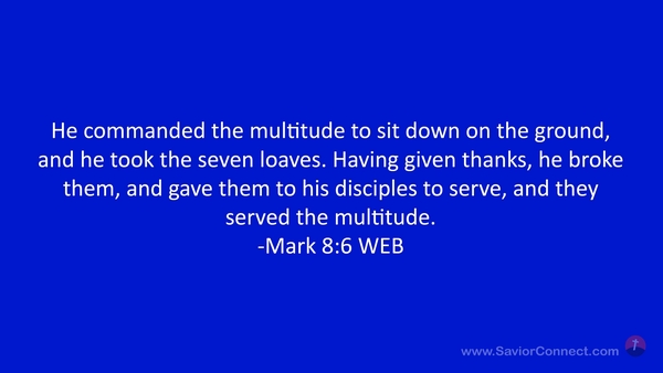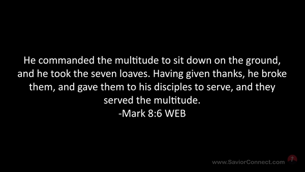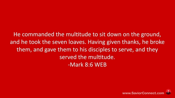 He commanded the multitude to sit down on the ground, and he took the seven loaves. Having given thanks, he broke them, and gave them to his disciples to serve, and they served the multitude. -Mark 8:6 WEB