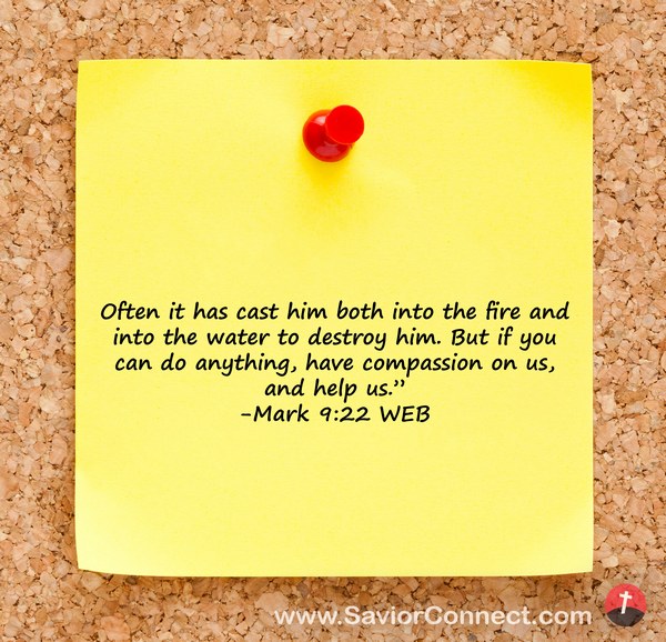 Often it has cast him both into the fire and into the water to destroy him. But if you can do anything, have compassion on us, and help us.” -Mark 9:22 WEB