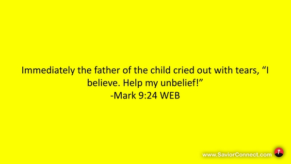 Immediately the father of the child cried out with tears, “I believe. Help my unbelief!” -Mark 9:24 WEB