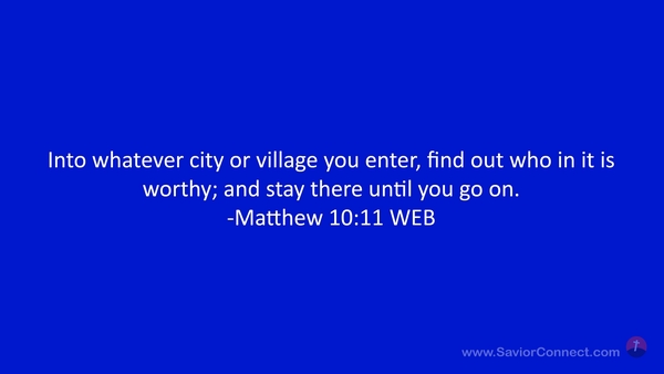 Into whatever city or village you enter, find out who in it is worthy; and stay there until you go on. -Matthew 10:11 WEB