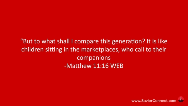 “But to what shall I compare this generation? It is like children sitting in the marketplaces, who call to their companions -Matthew 11:16 WEB