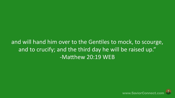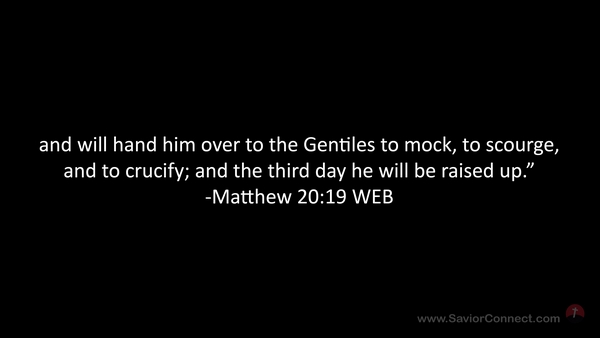 and will hand him over to the Gentiles to mock, to scourge, and to crucify; and the third day he will be raised up.” -Matthew 20:19 WEB