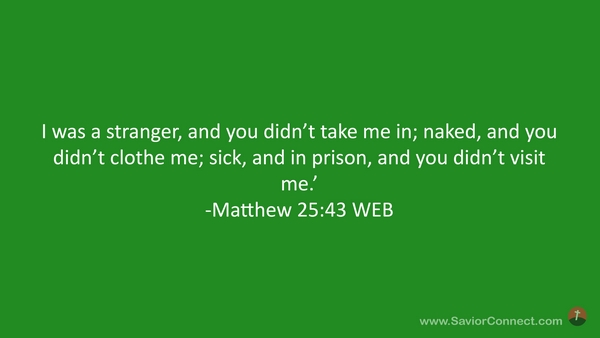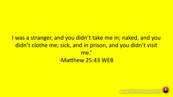 I was a stranger, and you didn’t take me in; naked, and you didn’t clothe me; sick, and in prison, and you didn’t visit me.’ -Matthew 25:43 WEB