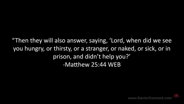 “Then they will also answer, saying, 'Lord, when did we see you hungry, or thirsty, or a stranger, or naked, or sick, or in prison, and didn’t help you?’ -Matthew 25:44 WEB