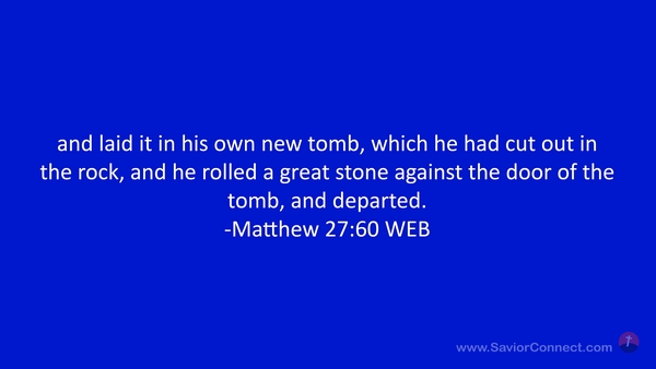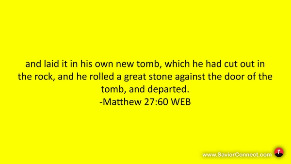 and laid it in his own new tomb, which he had cut out in the rock, and he rolled a great stone against the door of the tomb, and departed. -Matthew 27:60 WEB