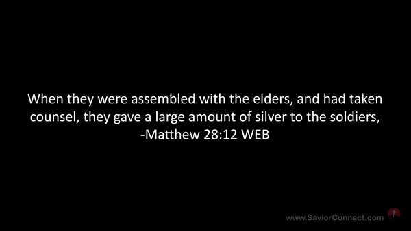 When they were assembled with the elders, and had taken counsel, they gave a large amount of silver to the soldiers, -Matthew 28:12 WEB