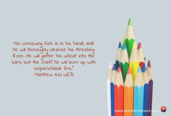 His winnowing fork is in his hand, and he will thoroughly cleanse his threshing floor. He will gather his wheat into the barn, but the chaff he will burn up with unquenchable fire.” -Matthew 3:12 WEB
