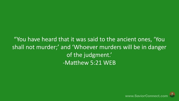 “You have heard that it was said to the ancient ones, 'You shall not murder;’ and 'Whoever murders will be in danger of the judgment.’ -Matthew 5:21 WEB