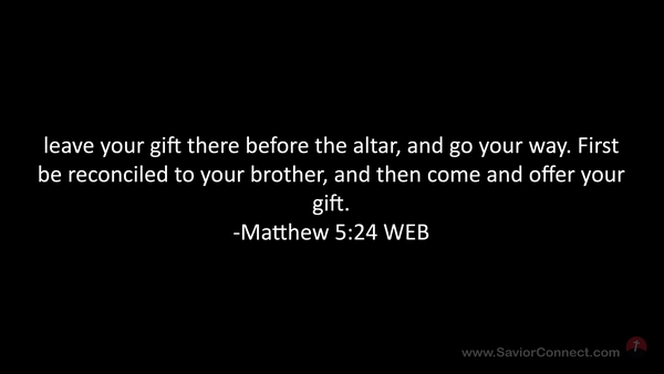 leave your gift there before the altar, and go your way. First be reconciled to your brother, and then come and offer your gift. -Matthew 5:24 WEB