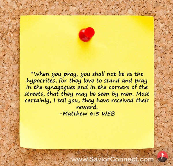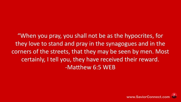“When you pray, you shall not be as the hypocrites, for they love to stand and pray in the synagogues and in the corners of the streets, that they may be seen by men. Most certainly, I tell you, they have received their reward. -Matthew 6:5 WEB