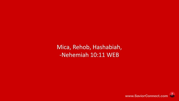 Mica, Rehob, Hashabiah, -Nehemiah 10:11 WEB